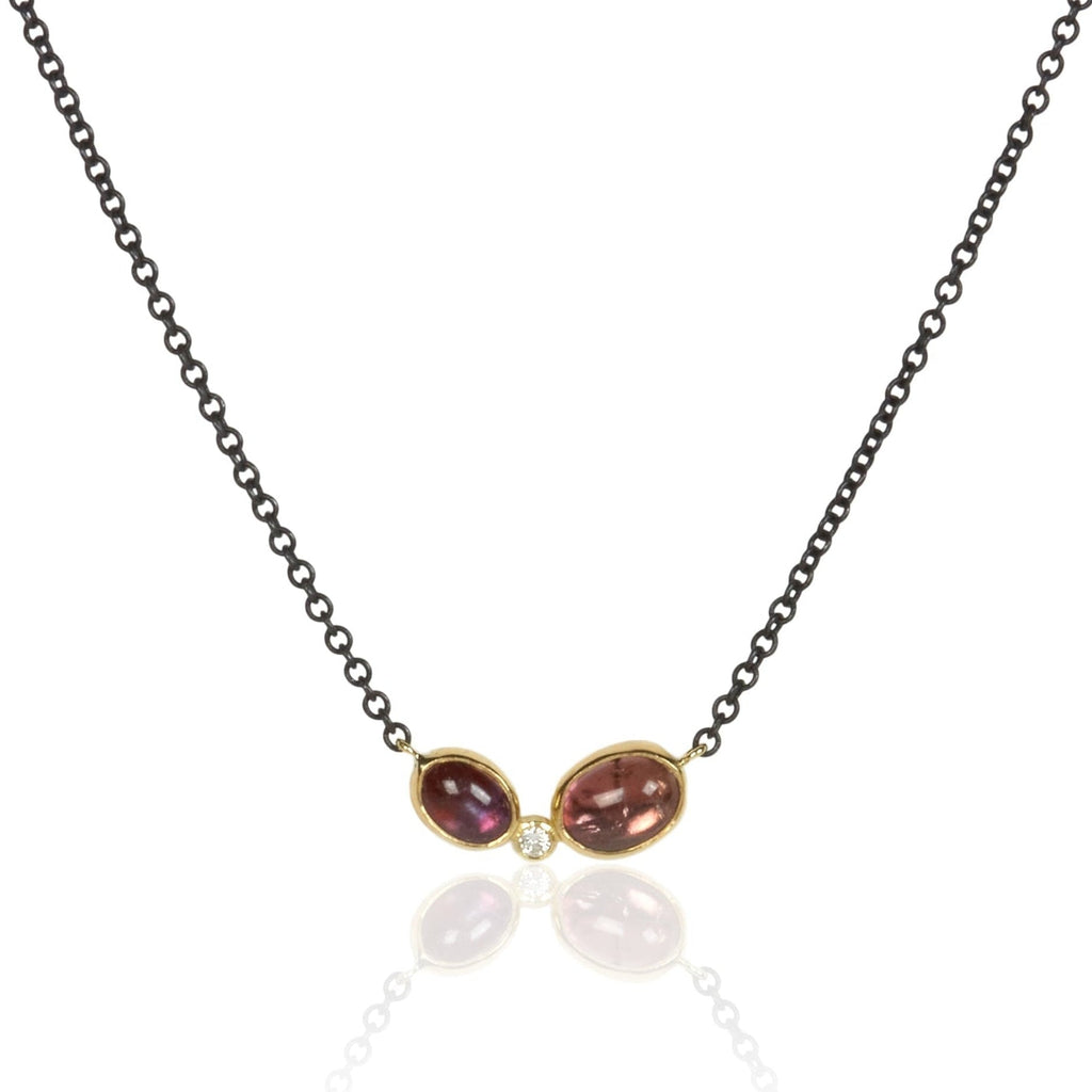 Two richly colored Umba sapphires (1.85 ct total weight) — each with its own hue and natural inclusions — sit side by side in this one-of-a-kind pendant, joined by a sparkling .03 ct post-consumer recycled diamond. The sapphires were sourced from the Umba River Valley in Tanzania, a region known for producing sapphires in an unusually wide range of warm, earthy tones.