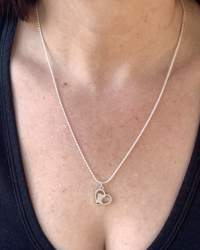 Choose a 1.5 mm sterling silver wheat chain, available in 16", 18", or 20" lengths.